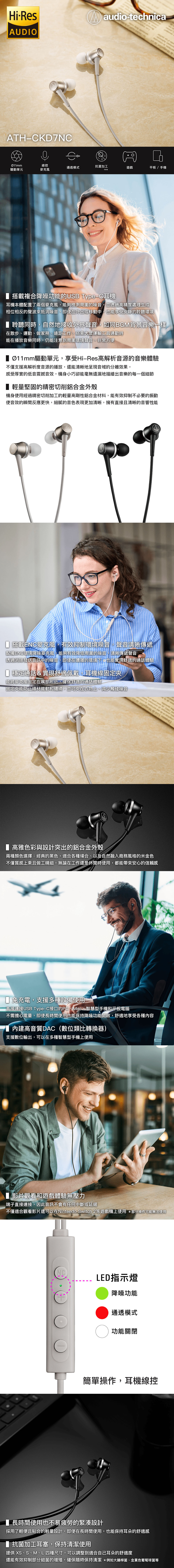 鐵三角 ATH-CKD7NC USB Type-C™耳道式降噪耳機