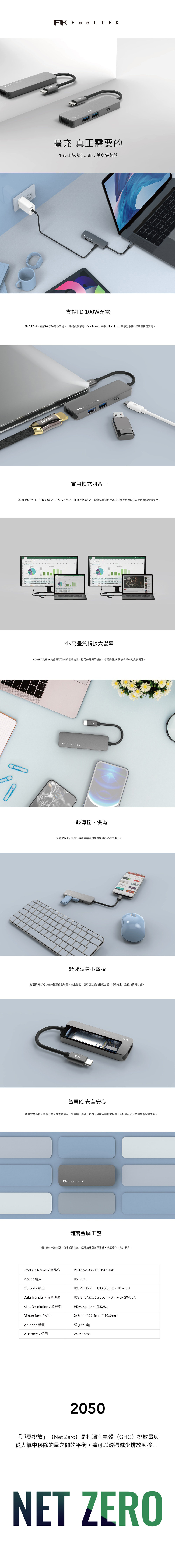 Feeltek 4埠PD多功能USB-C集線器