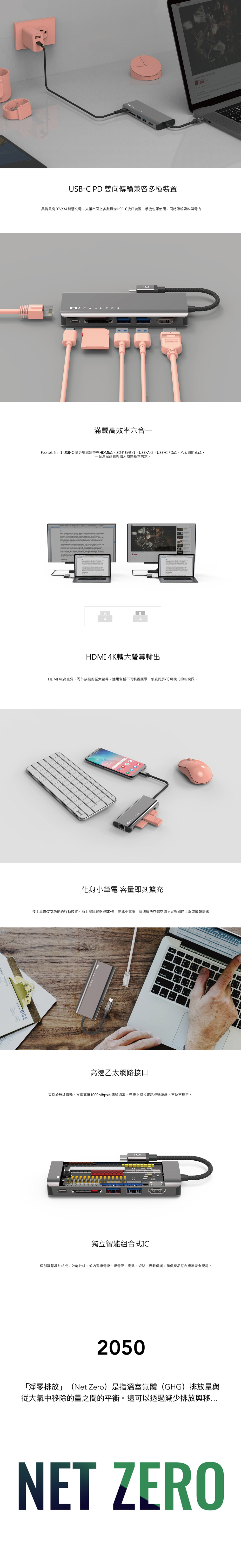Feeltek 6埠PD多功能USB-C集線器